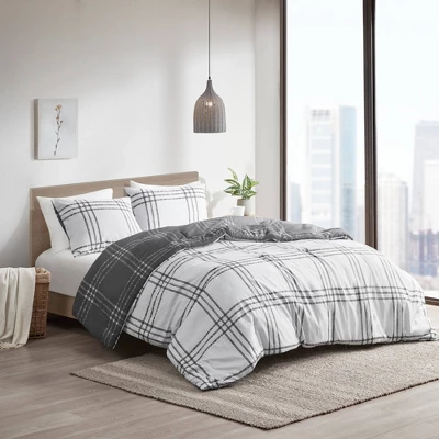 - Modern style reversible windowpane plaid duvet cover set