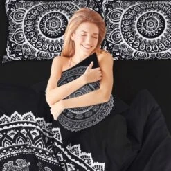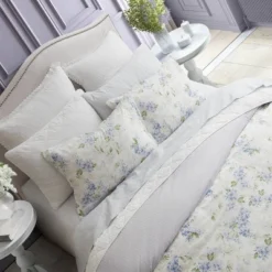 Give your bedroom an eclectic update with the 3pc Stella Dot Cotton Duvet Cover Mini Set. The duvet cover and coordinating shams showcase an all over copper metallic embroidery with an ikat flair. These ornate dots are highlighted beautifully against a crisp, white ground and allow you to easily mix and match different colors and textures with the top of bed. Made of 200 TC cotton percale, the duvet cover features a button closure that allows you to place and secure a comforter insert inside the duvet, for additional comfort and warmth.