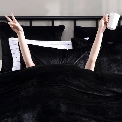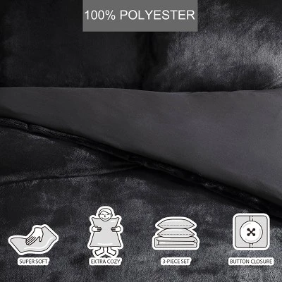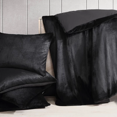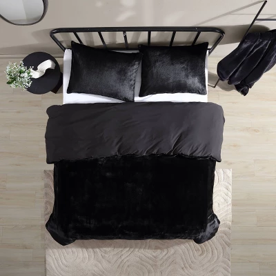 3pc Solid Faux Fur 100% Polyester Duvet Set Black – City Scene