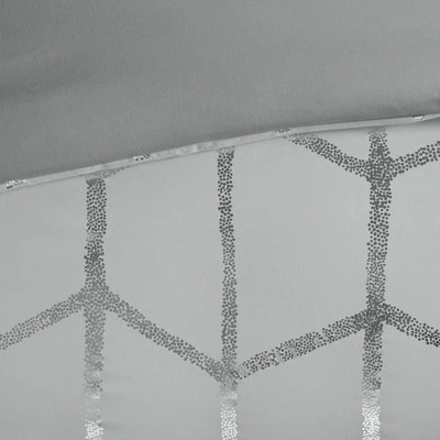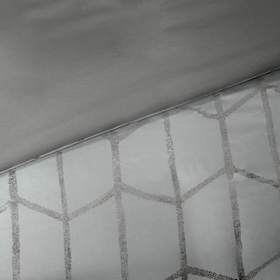 - Metallic geometric print on solid duvet cover set