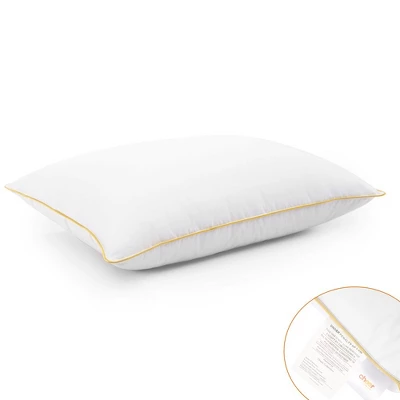 Presenting the Cheer Collection Toddler Pillow, meticulously designed to offer the perfect neck alignment for your growing child. This thoughtfully crafted pillow ensures not only a restful night’s sleep but also supports the natural development of your toddler.Wrapped in a hypoallergenic 100% cotton percale exterior, our toddler pillow provides a luxurious, silky-smooth touch that’s gentle on even the most delicate skin. This fabric is not only incredibly soft but also hypoallergenic, making it a great choice for children with sensitivities.Featuring a thread count of 230, the premium cotton percale fabric guarantees exceptional comfort and lasting durability. This ensures that your toddler’s pillow remains a reliable companion throughout their growth journey.To add a touch of sophistication and bolster durability, our toddler pillow is adorned with satin piping detail, elevating its overall aesthetic.Measuring 19″ x 14″, this pillow is designed to perfectly accommodate your toddler’s comfort needs. Elevate your child’s sleep with the Cheer Collection Toddler Pillowāan elegantly crafted and hypoallergenic sleep essential that guarantees their comfort, support, and peaceful slumber as they rest and grow.