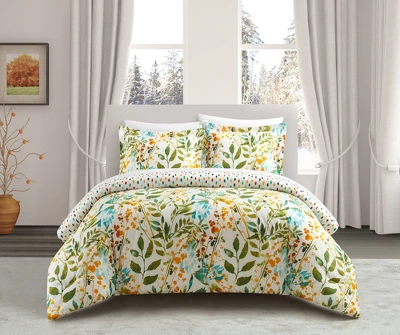 Create a floral oasis in your bedroom with the unique look of the Everly Green duvet cover set from Chic Home. This reversible duvet cover features a hand painted watercolor floral print in a palette of subdued plums, sages, and blacks on the face with a sage striped pattern on the reverse and has a discrete zipper closure. Complete the look with the included design coordinated floral pillow shams or mix and match with your own pieces for a distinct look. Specifications: Size: King, queen, twin. Color Scheme: Multi-color, Set Includes: Reversible Watercolor Floral Print Duvet Cover , Watercolor Floral Print Pillow Shams, Materials: Luxuriously brushed microfiber fabric, synthetic down alternative filling Fabric and Design: Silky soft brushed microfiber cotton-feel material. Features: Discrete zipper closure design for easy use Fits everything from light blankets to heavy duvets Luxuriously soft feel for a great night sleep with less tossing and turning Built to last with premium fabrics and expert stitching.
