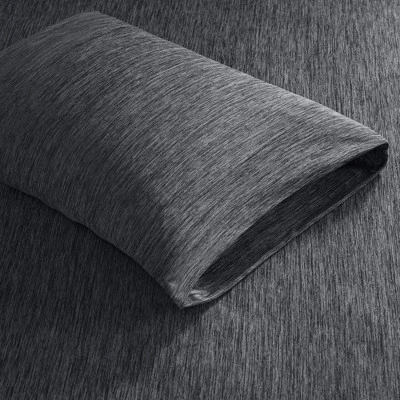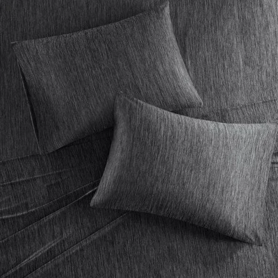 Dive into this cool and comfortable Urban Habitat jersey knit sheet set. Made from 50% nylon and 50% polyester, this blended fabric feels cool and breathable to even the hottest of sleepers. This silky smooth sheet set features heathered yarns to create a chic tonal look that pairs easily with any bedding set. Machine washable for easy care and wrinkle resistant. Fitted sheet fits up to 16″ of mattresses.