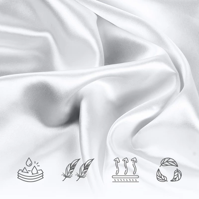 - INDULGE IN SUMPTUOUSLY SMOOTH VEGAN SILK – Our pillowcases are made of soft silky rayon fabric, this pillowcase collection has been meticulously designed to look and feel like real silk. With a soft and smooth texture, these pillow cases will bring a whole new level of luxury to your bedroom. The pack includes two Bright White Standard size (21″ W x 30″ L) pillowcases.
