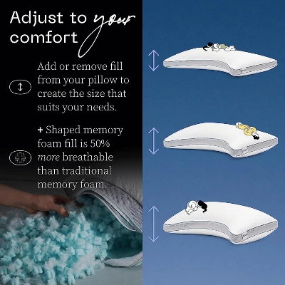 - You Sleep You: Be you with our adjustable cooling pillows for sleeping. Simply unzip the cover, add or remove stuffing to match your comfort level & get ready to sleep better! Personalize it the way you want it; each package comes with a 0.5 lb bag of fill. Cool+ also has 2 sides to choose from for a good night’s sleep; the cushy cool side & the firm, supercooled pad side.