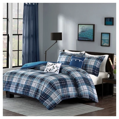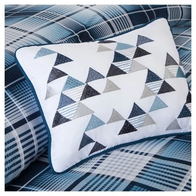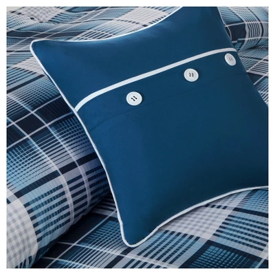 The Dane Comforter Set provides an updated plaid for the customer looking for a more modern look. Featuring several different shades of blue mixed with gray and white, this comforter set is printed on microfiber for easy care. Two decorative pillows use embroidery and buttons details for added value to this collection.