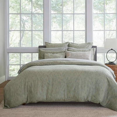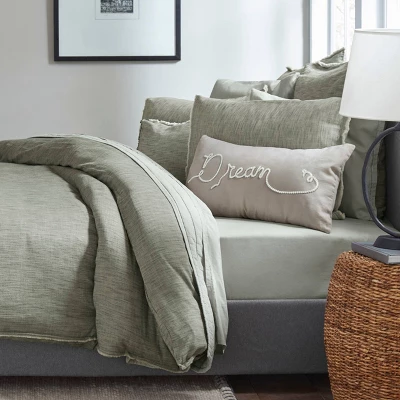 Inspired by Ellen’s cool and casual style, the Belmont Collection adds a timeless addition to your bedroom. This style is available in three unique pallets, a natural deep taupe, the smokey gray shades of soot and the comforting tone of soft jade. The design has a cozy linen/frayed edge effect, constructed of 100% cotton providing the ultimate feel of true comfort and relaxation. This product is oeko-tex certified, which ensures these textiles meet high safety and environmental standards. The duvet features a button closure and interior ties to assist in keeping the insert in place. Insert is not included. Included shams feature a European side closure. Machine washable for easy care. Twin Duvet Cover Set includes: One twin duvet cover (86″LX68″W) and one standard sham (21″LX27″W), Full/Queen Duvet Cover Set includes: One full/queen duvet cover (92″Lx88″W) and two standard shams (21″Lx27″W), King Duvet Cover Set includes: One king duvet cover (92″Lx107″W) and two king shams (21″Lx37″W). Oeko-Tex Certified.
