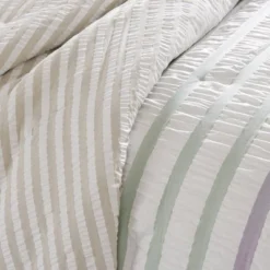 The Hayes 3 Piece Cotton Chambray Duvet Cover Set with Chenille brings a perfect blend modern and boho styles to your bedroom. This cotton duvet cover features chenille taping and trims, in a geometric design, that contrast the chambray fabric, for a chic boho look. A solid reverse offers a light contrast to the top of the bed. The 2 matching shams repeat the pattern of duvet cover to complete this globally inspired bedding set. Machine washable for easy care, this 100% cotton duvet cover set adds a sophisticated charm to your bedroom decor. A button closure allows you to place a padded insert within the duvet cover and inside corner ties prevent it from shifting (insert is NOT included).