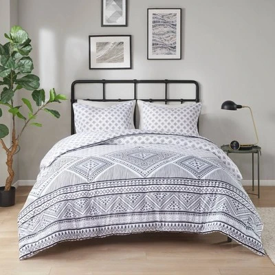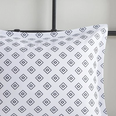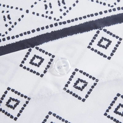 The Intelligent Design Isla Reversible Duvet Cover Set brings an eye-catching update to make your bedroom stand out. This reversible duvet cover features a bold contrasting geometric design with a small diamond pattern on the reverse for two distinct contrasting looks. The matching shams (1 in Twin/TwinXL) repeat the globally inspired design of the duvet cover to complete the modern bedding set. Machine washable for easy care, this reversible duvet cover set is OEKO-TEX certified, meaning it does not contain any harmful substances or chemicals to ensure quality comfort and wellness. An antimicrobial treatment helps reduce the growth of odor causing bacteria and keeps fabric lasting longer. A button closure at the foot end allows you to place a padded insert within the duvet cover and internal corner ties prevent it from shifting (Insert is NOT included).