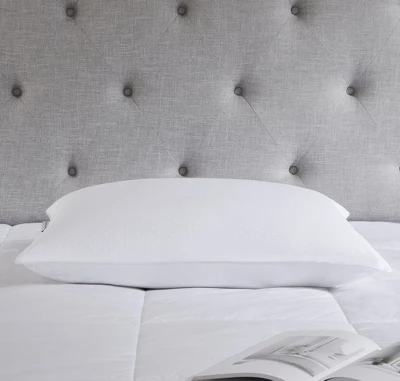 Drift into an indulgent sleep with the Stearns & Foster® PrimaCool™ Pillow. At a plush, medium support level, this pillow is the ideal density for most sleepers. The pillow features hypoallergenic PrimaCool™, an innovative fabric blend of Tencel® and cotton that helps to keep you cool all night. The silky fabric is treated with both an antimicrobial finish as well as Scotchguard™ stain release for easier care.400 Thread Count CottonMedium Density – Perfect for Back and Side SleepersMoisture Wicking and Cooling Technology Used to Help Regulate Body Temperature60% Tencel/40% Cotton Woven Dobby Stripe PatternAntimicrobial Fabric FinishScotchguard™ Stain Release Fabric FinishEnviroLoft® Polyester Filling – Premium Down AlternativeSold Individually – We Suggest Two Per SleeperEasy care machine wash & dryMade in The USA of Imported MaterialsSize & Weights:Jumbo 20 x 28 Inches, 23 oz. FillingKing – 20 x 36 Inches, 30 oz. Filling