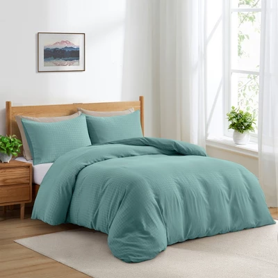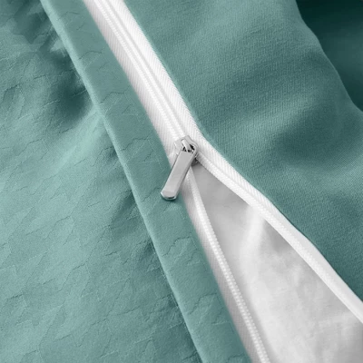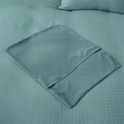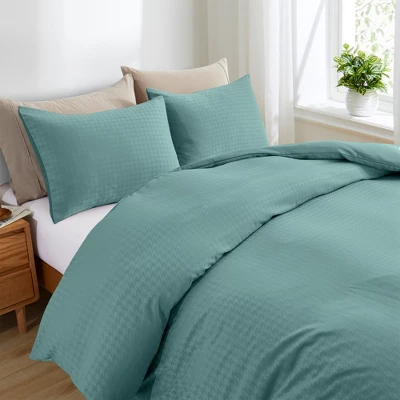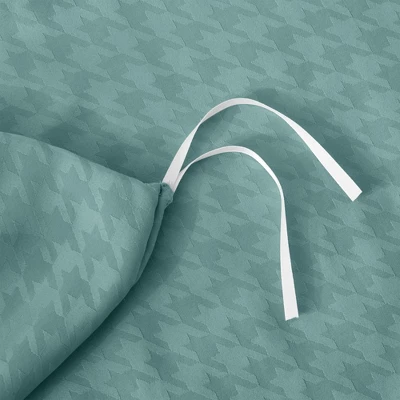 Soft and plush microfiber material provides comfort for your sweet night dreaming and luxurious elements with colorful houndstooth jacquard . This duvet cover set features a classic houndstooth pattern that gives your bedroom luxury elements and texture, while reversing to a solid color on the other side for contrast. Designed with invisible side zipper closure, easily allows you to insert and remove your duvet. Four inside corner ties hold your duvet in place, you may sleep peacefully soundly all night.