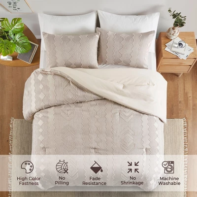 - Beautiful Unique Geometric Clipped Designs, Elegant Stylish and Reversible Design, Reversible comforter design with clipped pattern and solid color design on reverse. Choose from multiple distinctive clipped designs that add a touch of elegance and texture to your bedroom decor, elegant and stylish. Soft and premium solid color microfiber on reverse, allowing you to customize your sleep sanctuary.