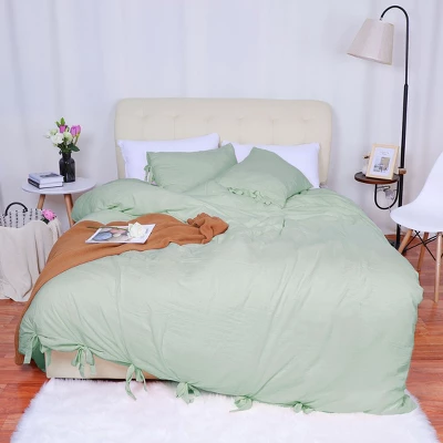 100% Microfiber polyester, wash cotton technology. Resist wrinkle and fade, bright colors made exclusively not to fade with washings.Soft, breathable, and comfortable.The strap design and bright and solid colors will decorate multi-room style, and the duvet cover set can be paired with looks both traditional and contemporary alike.Size Information:Single quilt cover: 168 x 229cm/66″ x 90″, single pillowcase: 51 x 66cm/20″ x 26″;King of quilt cover: 229 x 229cm/90″ x 90″, king of pillowcase: 51 x 66cm/20″ x 26″;Super king of quilt cover: 264 x 229cm/104″ x 90″, super king of pillowcase: 51 x 92cm/20″ x 36″.Unique Design: Strap design on the edge of the duvet cover and pillowcases.No ironing is required to maintain wrinkled texture on the night of sleep on our comfortable duvet covers.The four corner ties ensure that your comforter remains immovable in the cover.Additional Gift for Families and Friends.Surprisingly soft for being so budget-friendly, this microfiber duvet cover set adds a wonderful dose of comfortable to any well-made bed.Makes a nice choice for the teen’s bedroom, a college dorm room, or for a first-time apartment.It can even be used as a fresh set for overnight guests or as a handy backup set on laundry day.Easy Care.Machine wash in cold water with similar colors.Tumble dry low. Do not iron. Nice tips: 1. To protect the strap more solid, please turn the inside out or use a laundry bag when you wash the bedding set. Soaking time should not be too long. 2. Please forgive the slight color difference caused by light and monitor. 3. Variability of 1-3 cm is possible due to the measurement process.