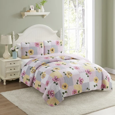 Soft and inviting, the Floral Patchwork Quilt Set, is an ideal layer any time of year. The fabric is printed with a pink and yellow flowers over a multicolor squares patchwork design. Mix it with crisp whites or play it up with patterns – changing the look is that easy. Oversized fit gives you the perfect amount of overhang!