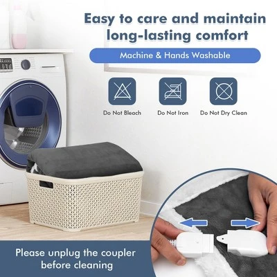 - Machine Washable Heated Blanket: With this easy to clean electric blanket, your life will become simpler! As long as you disconnect the power supply of the electric blanket and remove the coupler, you can put the electric blanket into the washing machine for cleaning. You can also wash the blanket by hand or washer using slow agitation and normal spin speed.