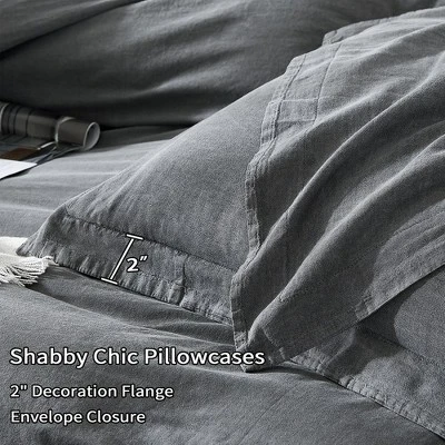 - With its natural textured fabric and 2″ flange-like ruffle, this duvet cover exudes a simple and shabby chic style. The solid linen look complements various bedroom decor styles.
